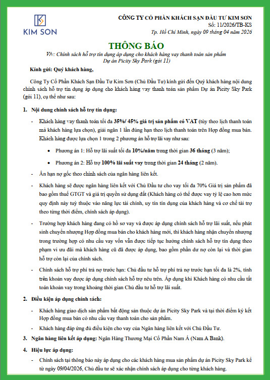 Chính sách hỗ trợ tín dụng mới của dự án Picity Sky Park không chỉ mang tính cạnh tranh cao mà còn thể hiện cam kết đồng hành cùng khách hàng trong hành trình sở hữu ngôi nhà mơ ước. Với những ưu đãi vượt trội này, tôi tin rằng Picity Sky Park sẽ trở thành lựa chọn hàng đầu cho những ai đang tìm kiếm một căn hộ chất lượng với chính sách tài chính hấp dẫn.