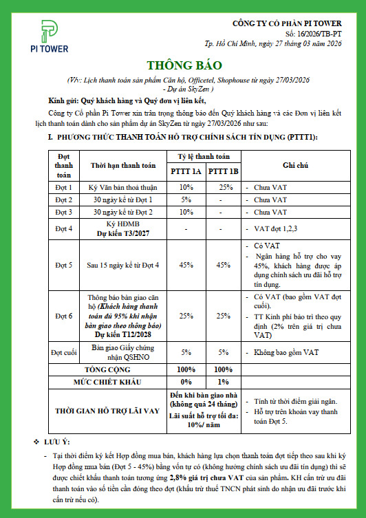 Tiến độ thanh toán chuẩn tại Picity Sky Zen