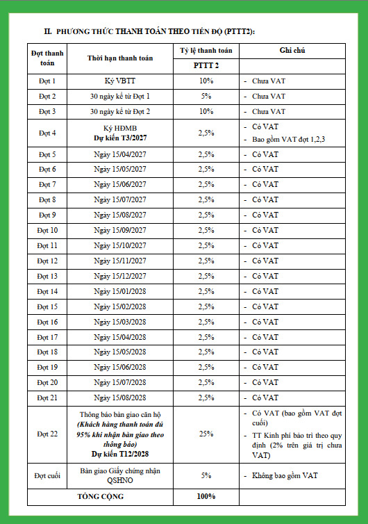 Thanh toán theo tiến độ xây dựng (mỗi đợt 5% – 10%)