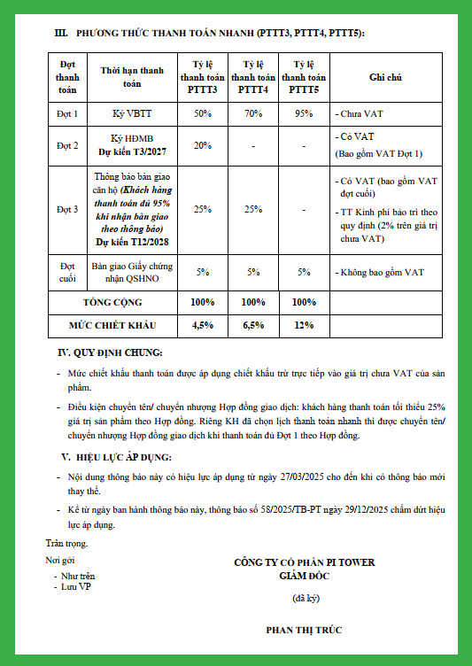 Chính sách thanh toán tại dự án Picity Sky Zen được đánh giá là linh hoạt – nhẹ vốn – hỗ trợ tối đa cho người mua ở thực lẫn nhà đầu tư. Chủ đầu tư đưa ra nhiều phương án thanh toán khác nhau, phù hợp với từng đối tượng khách hàng, từ người có tài chính trung bình đến khách hàng có dòng tiền mạnh.
